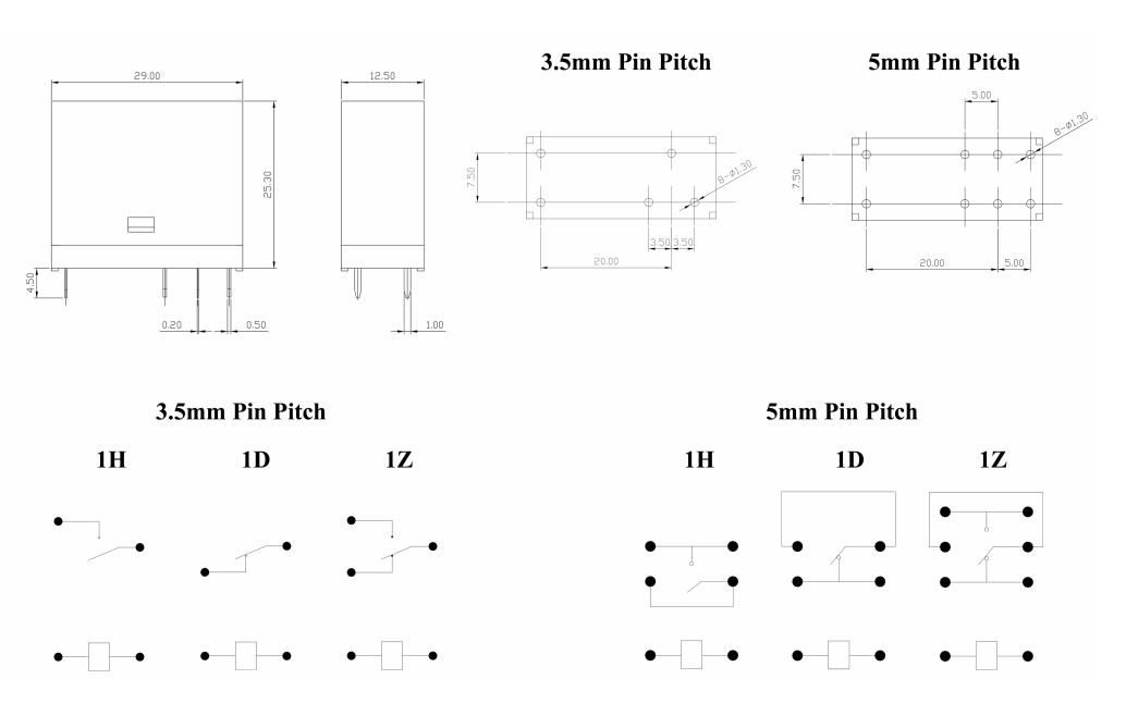 İletişim Özelliği | Biçim | 1Z(SPDT),1H(SPST-HAYIR),1B(SPST-NC) | 2Z(DPDT),2H(DPST-YOK),2B(DPST-NC) | |||||