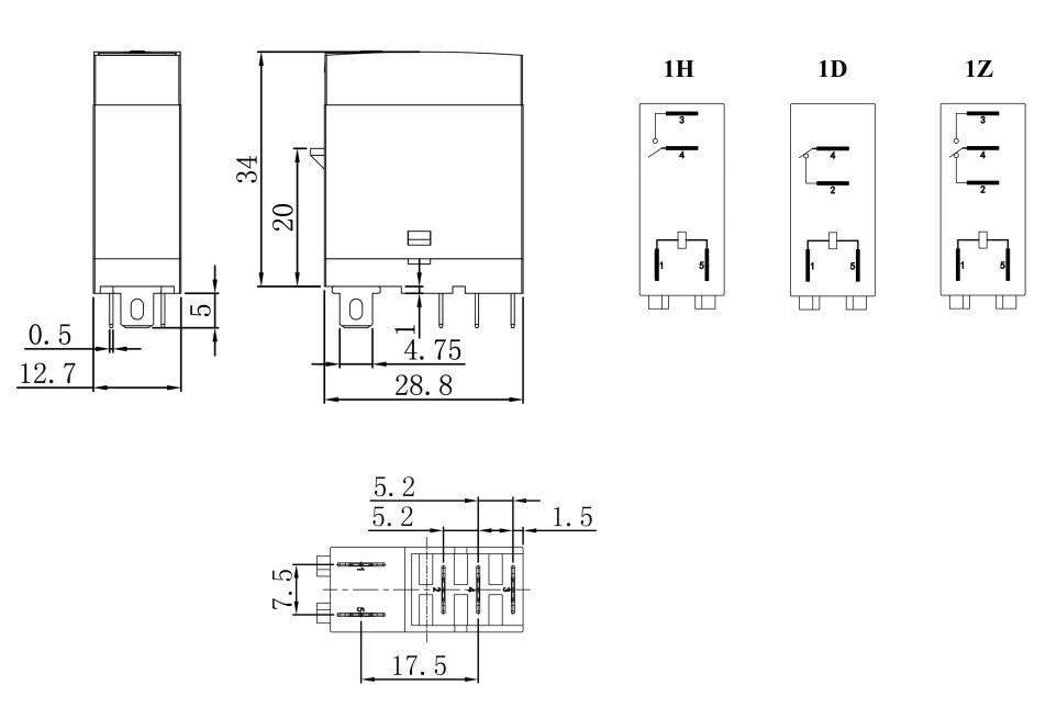1Z(SPDT);1H(SPST-NO);1D(SPST-NC)