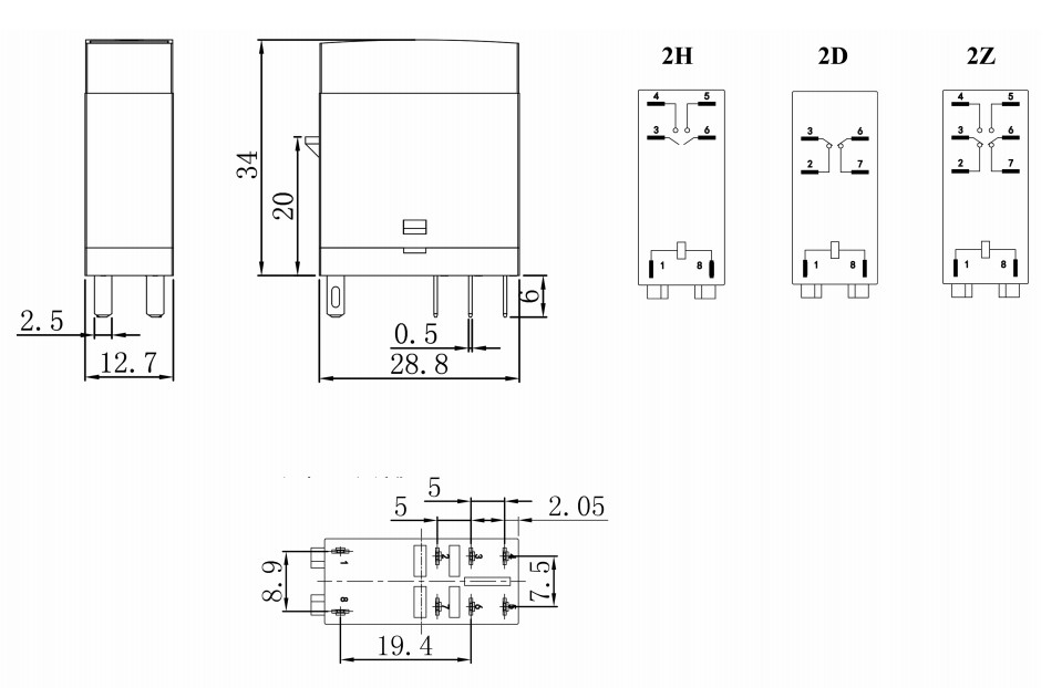 İletişim Özelliği | Biçim | 1Z(SPDT);1H(SPST-NO);1D(SPST-NC) | 2Z(DPDT);2H(DPST-NO);2D(DPST-NC) | |||||